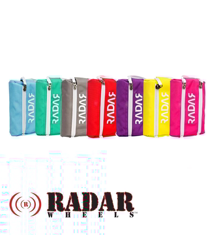 The Radar Wheel bag is perfect for storing and organizing your extra wheels. Double handle design makes the bag easy to carry, and the double zipper makes it easy to load and unload. No need to tie your wheels up with a shoelace, or have them rumble around in your skate bag.